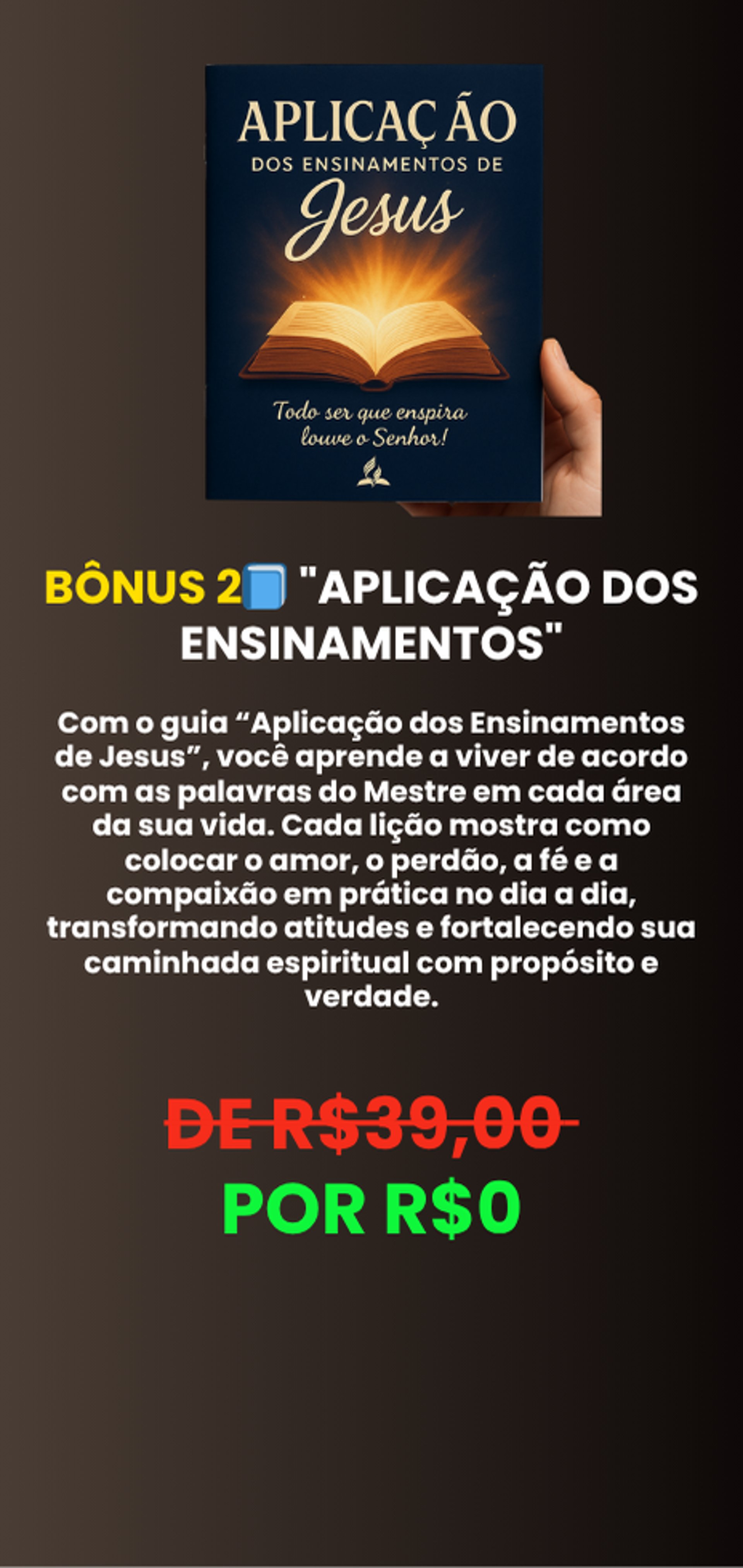 Com ensinamentos baseados na Bíblia você aprende a colocar em prática os ensinamentos de Jesus de forma simples e real. Cada lição mostra como viver os princípios bíblicos no cotidiano, fortalecer a fé e transformar atitudes com sabedoria divina em cada decisão do dia a dia.
